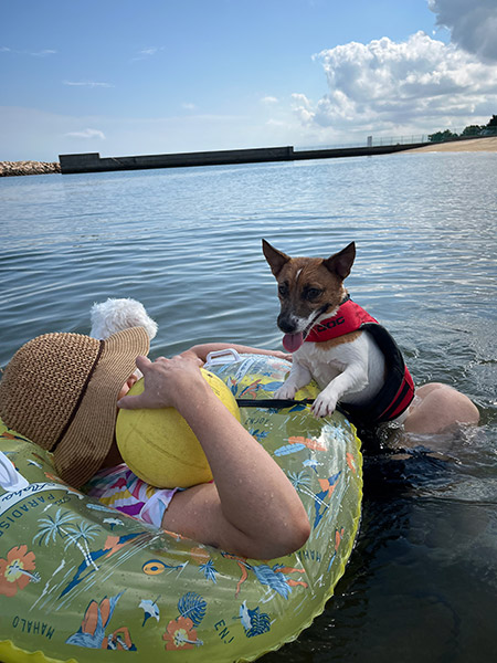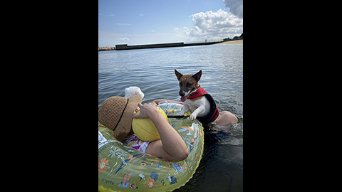今年の夏は暑さに負けず、何度も愛犬と朝からビーチに行って水泳練習をしていました。おかげさまで夏の思い出がたくさんできました!練習を重ねるたびに愛犬が自信たっぷり泳ぐ姿や楽しそうな姿を見られてとっても嬉しかったです。