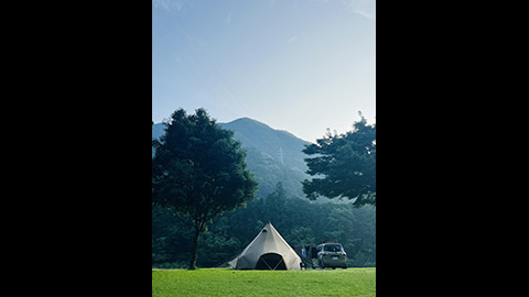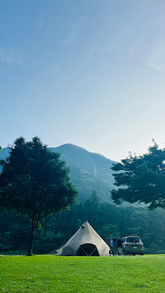 山の澄んだ空気に包まれた朝、テントの外に出ると、世界がまだ眠っているような静けさが広がっていた。