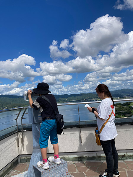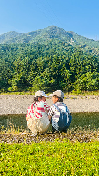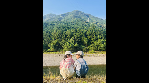 この写真は、家族でお出かけをし、川辺で遊ぶ家族の様子を見て笑顔になっている祖母を撮影したものです。祖母は家族と一緒に過ごす時間がとても好きで、喜んでいる時はいつも素敵な笑顔を見せてくれます。私は、祖母が朗らかに笑うその笑顔が大好きで、その表情を写真におさめ、今回のフォトコンテストに応募させていただきました。