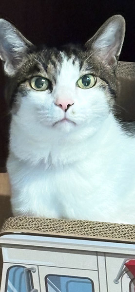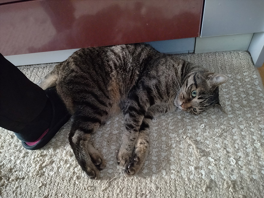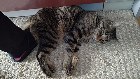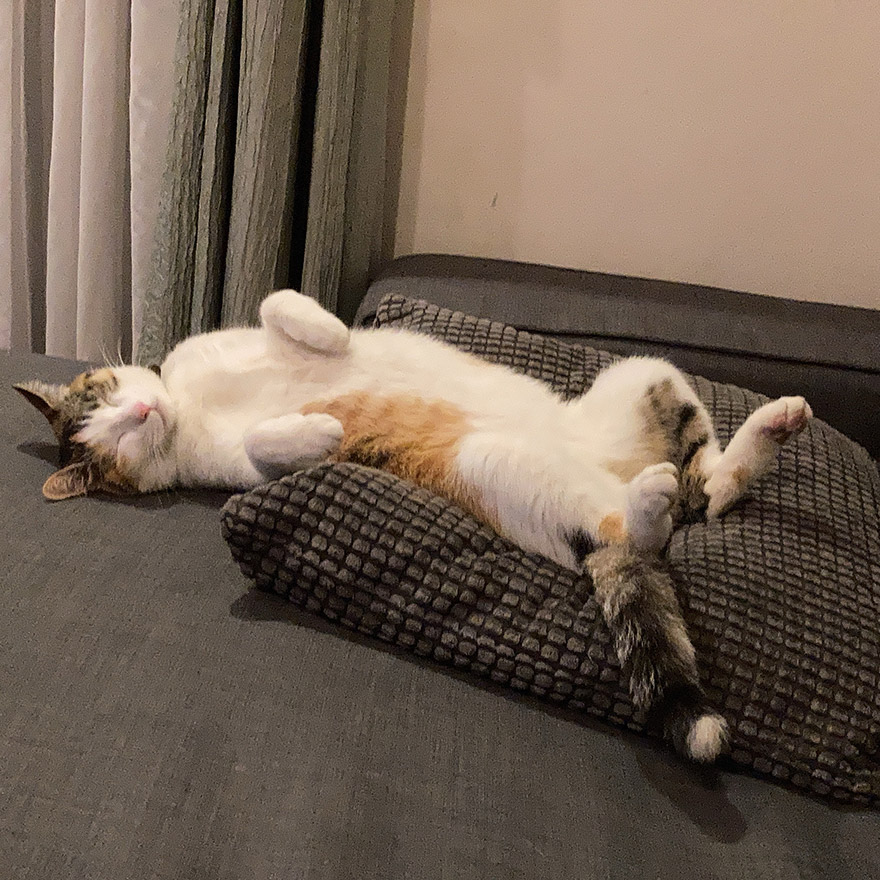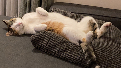 すっかりくつろぎモードで良く腹を出し構ってちゃんアピールをしている時のワンショットです。