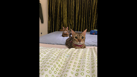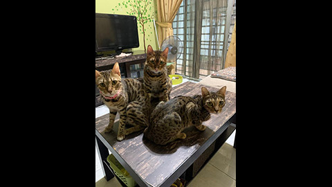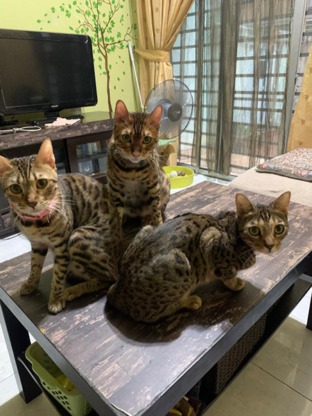 遠くで見ると同じに見えるけど顔もヒョウ柄も色も性格も全然違うベンガルズ達です。