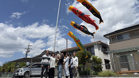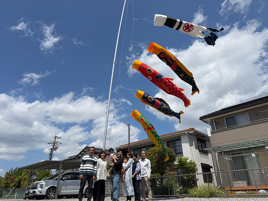 新しい家族が増えて、今では少なくなった鯉のぼりを建てると5月の強い風で元気よく泳いでくれました。新しい家族も元気にすくすく育ってほしいものです。