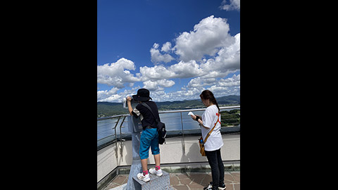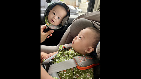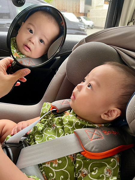 妻と孫の3人でドライブに出かけたときのワンシーン。旺盛な探求心を持つ孫の行動をサポートする妻。晴天に恵まれた楽しい休日の思い出です。