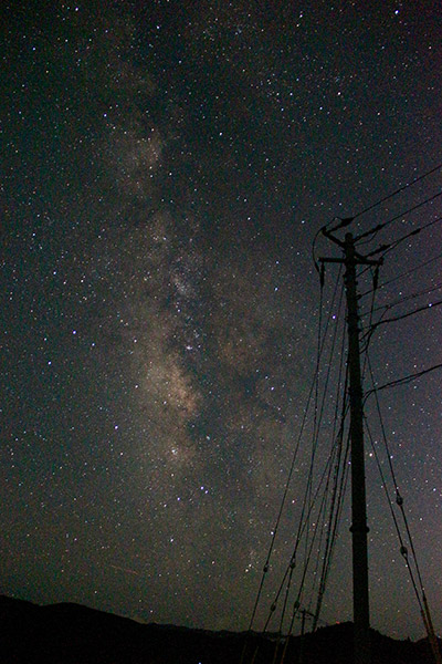 見慣れている電柱と流星群という対照的な組合せが新鮮でした。