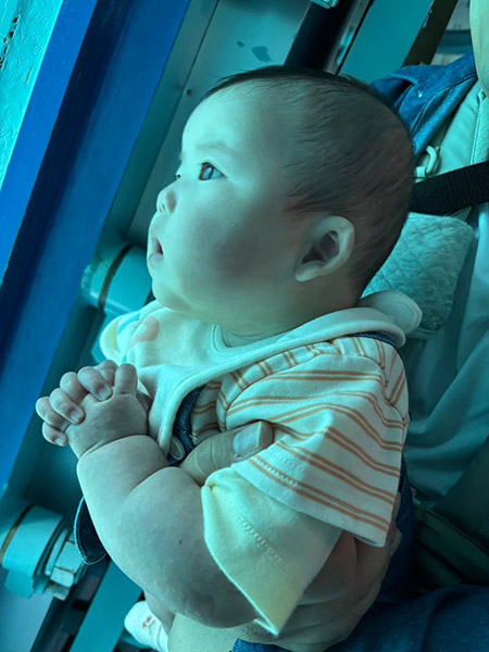 はじめての本物の海とお魚に魅了され手を合わせているのがとてもかわいらしいです
