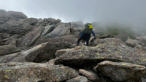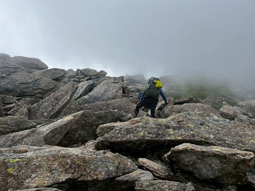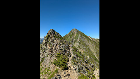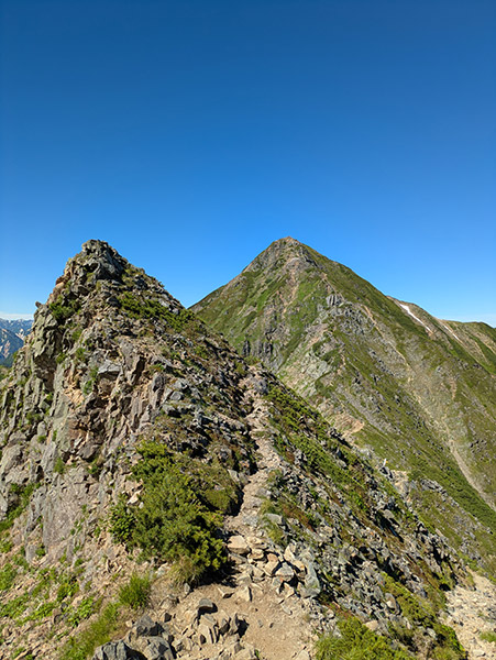8月に休暇を取って家族3人で白峰三山を縦走してきました。初日八本歯コルから北岳山頂へ向かう岩場を登っているところです。