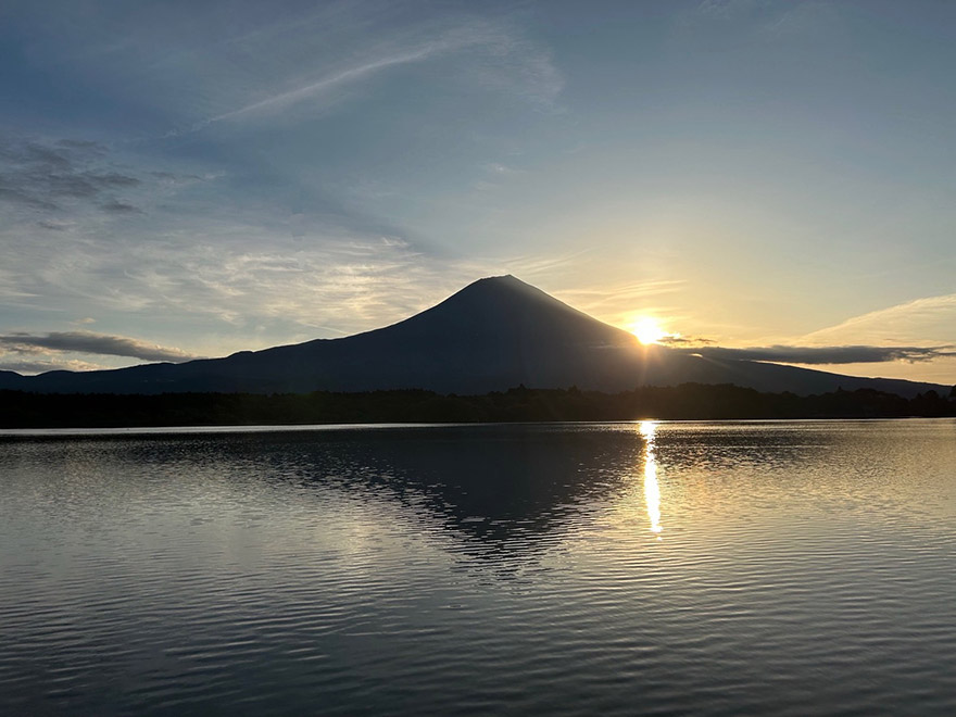 勤続30年のリフレッシュ休暇で富士山近くの田貫湖に行く予定のため、試釣を兼ねて田貫湖に行きました。日の出前に着き、朝日の映える富士山が撮れました。