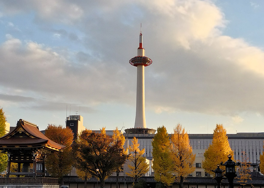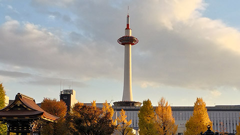 私の誕生日祝いに、友人が京都の焼き肉やさんのランチに連れて行ってくれました。美味しく楽しい食事を楽しんだ帰り道に立ち寄った東本願寺からの風景です。友人の心遣いのおかげか、いつも以上に素敵な京都タワーに出逢えた素敵な一日でした。