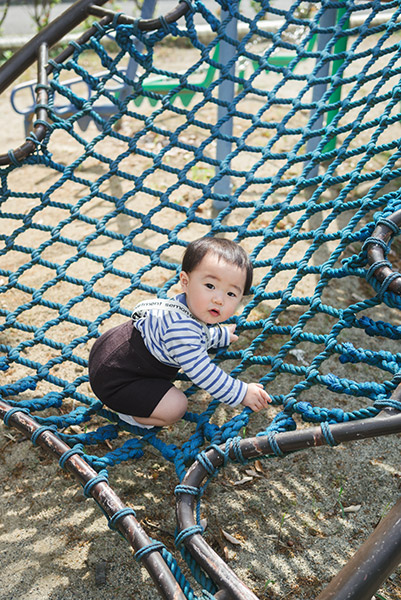 初めての遊具に少し戸惑いながらも、自分の力で一歩ずつ挑戦していく姿を見て、成長を感じました。